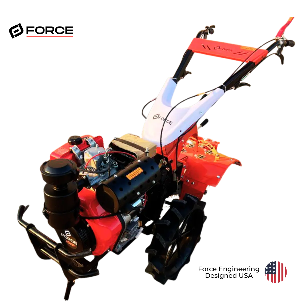 El Motocultor 4TG8A tiene una gran anchura de trabajo de 135cm y es ideal para cultivos frecuentes. Las púas contrarrotativas y la alta velocidad de rotación facilitan el trabajo de sus proyectos más difíciles en el jardín. Equipado con un motor FORCE Diesel de 20HP confiable y de fácil arranque con 2 marchas adelante y 1 marcha atrás para mejorar la maniobrabilidad en el campo.