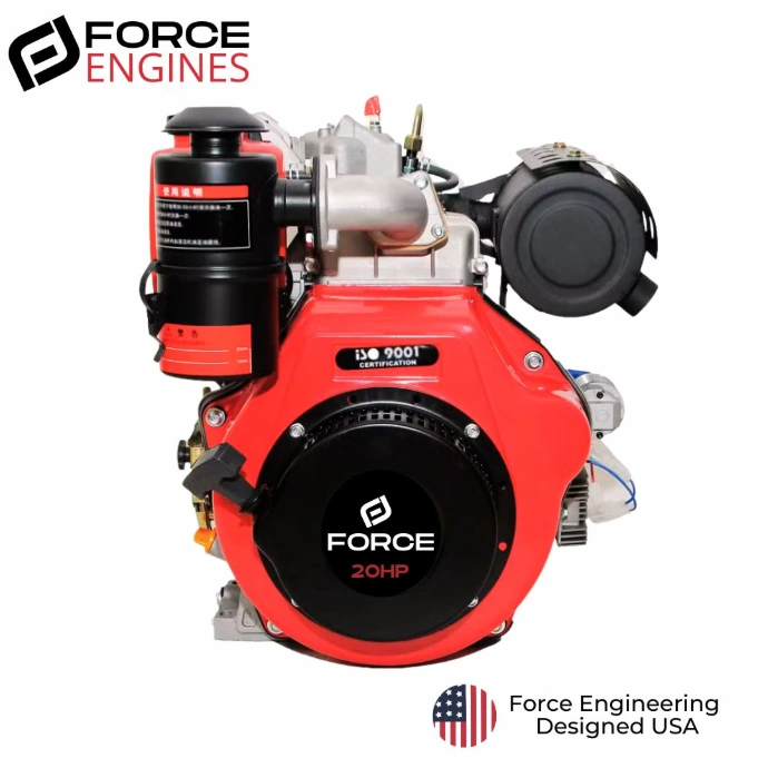 El Motor FORCE 195FA cuenta con un desplazamiento de 695cc que garantiza una potencia neta de 18HP. Motor confiable y de fácil arranque gracias a su arranque con cuerda retráctil y arranque eléctrico.